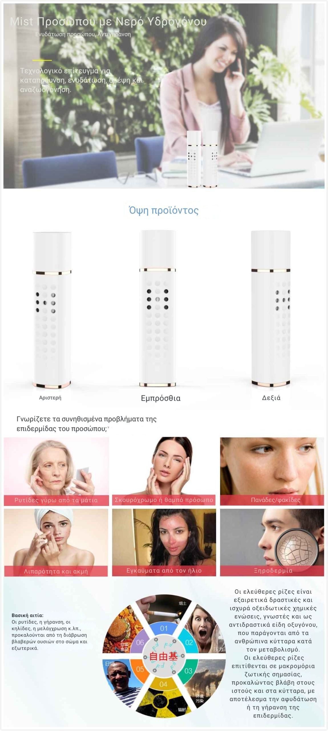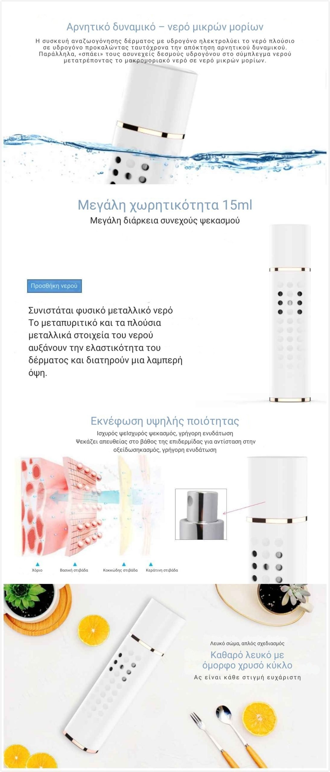 Ανανεώστε το δέρμα σας με το Σπρέι Προσώπου με Νερό Πλούσιο σε Υδρογόνο, έναν φορητό ψεκαστήρα που συνδυάζει την ενυδάτωση με τα αντιοξειδωτικά οφέλη του υδρογόνου.
